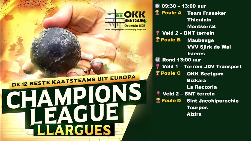 De ynternationale top fan it keatsen komt dit wykein nei Fryslân. De bèste 3 teams út ‘e Belgyske kompetysje (Thieulain, Tourpes en Maubeuge), Spaanske topteams lykas Montserrat, Alzira en Montserrat en 4 Nederlânske teams (Bitgum, Sint Jabik, Dronryp en Frentsjer) sille stride om ‘e titel.