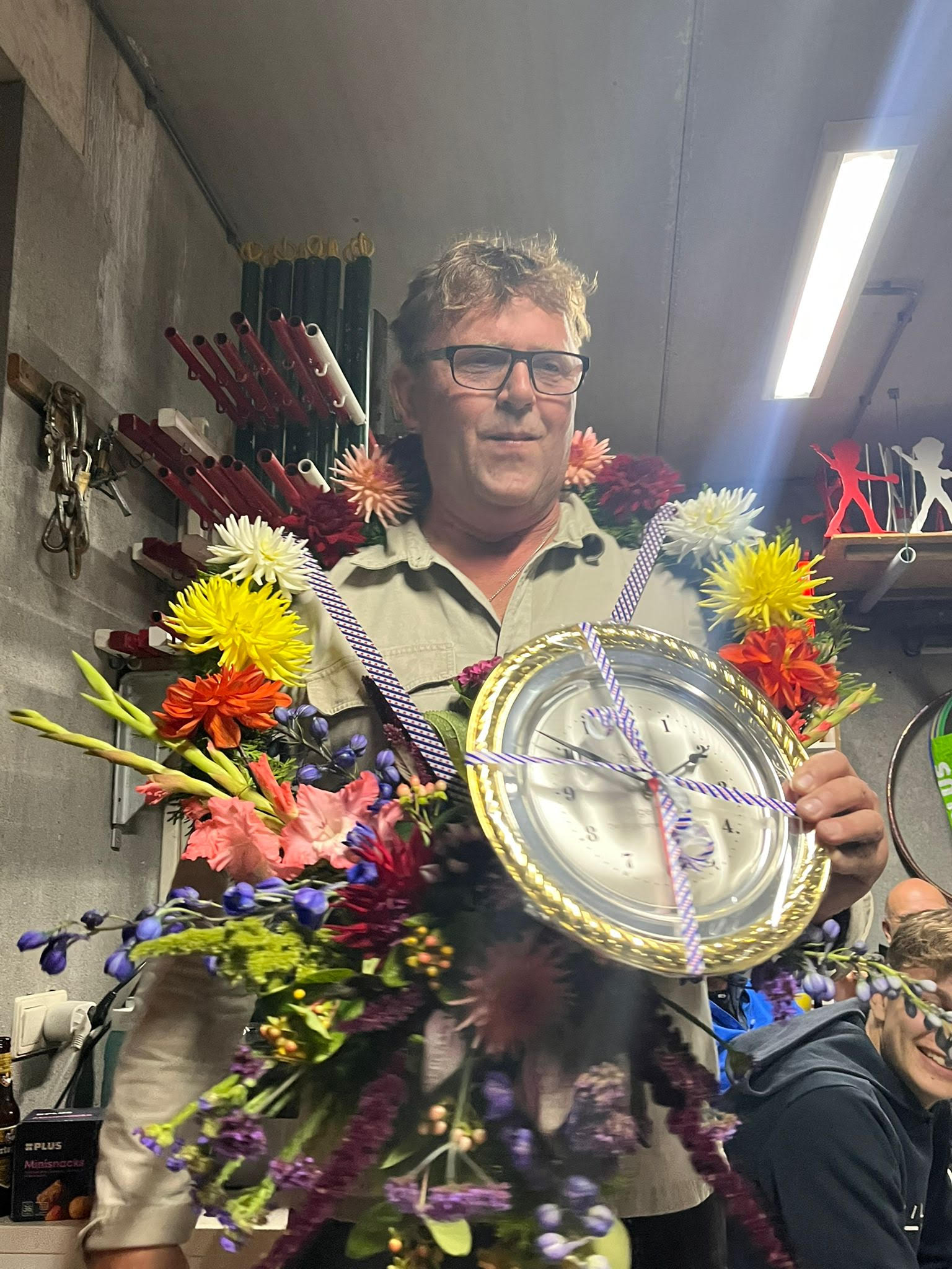 Pieter hat it allegear dik fertsjinne. Net allinnich hat hy 25 jier it kompetysjekeaten regele, hy is op meardere mêden tige belutsen by de KV. Skiedsrjochter, karmaster, (mei)makker fan krammen, banken, kweapeallen, materiaalkarre, fjildlizzer, foaroanman by de realisaasje fan de keatsmuorre, en sa kin wy noch wol eefkes trochgean. It is fansels moai dat Pieter yn in protte (materiaal)dingen stipe wurdt troch syn baas, de Mannen van Staal. Tige wichtich.